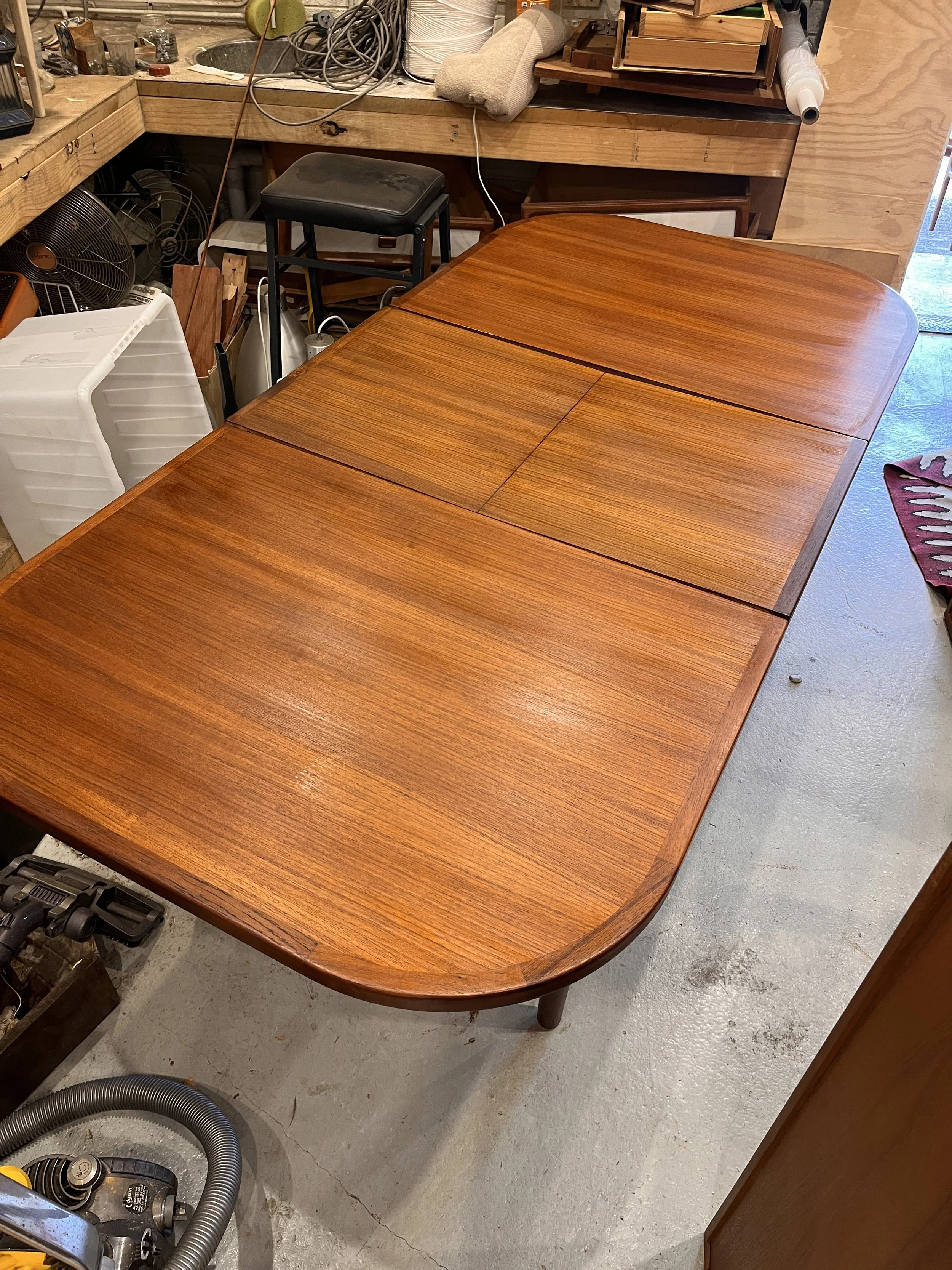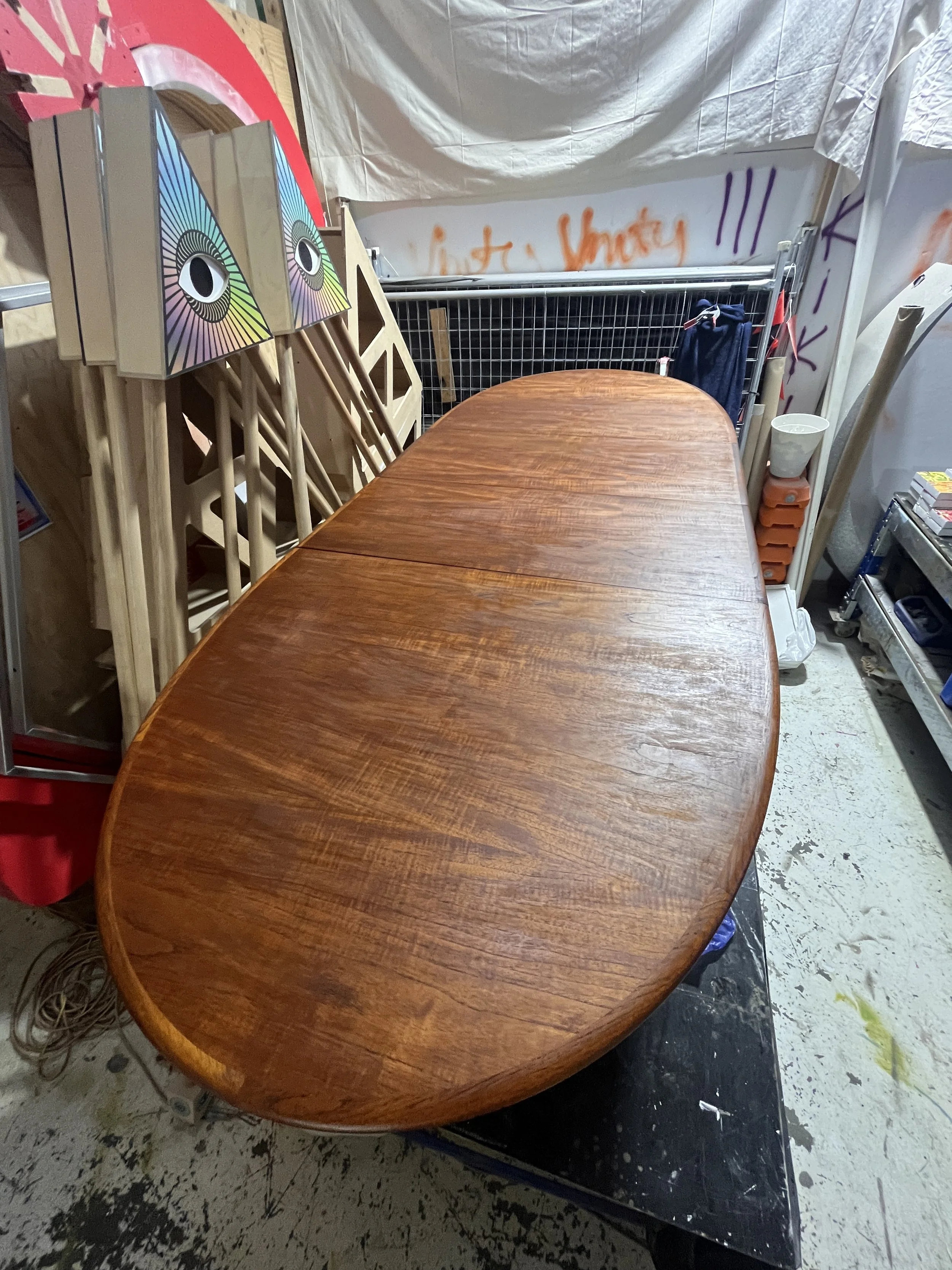 Circa 1960’s, nice elegant table with a beautiful table top freshly oiled.
