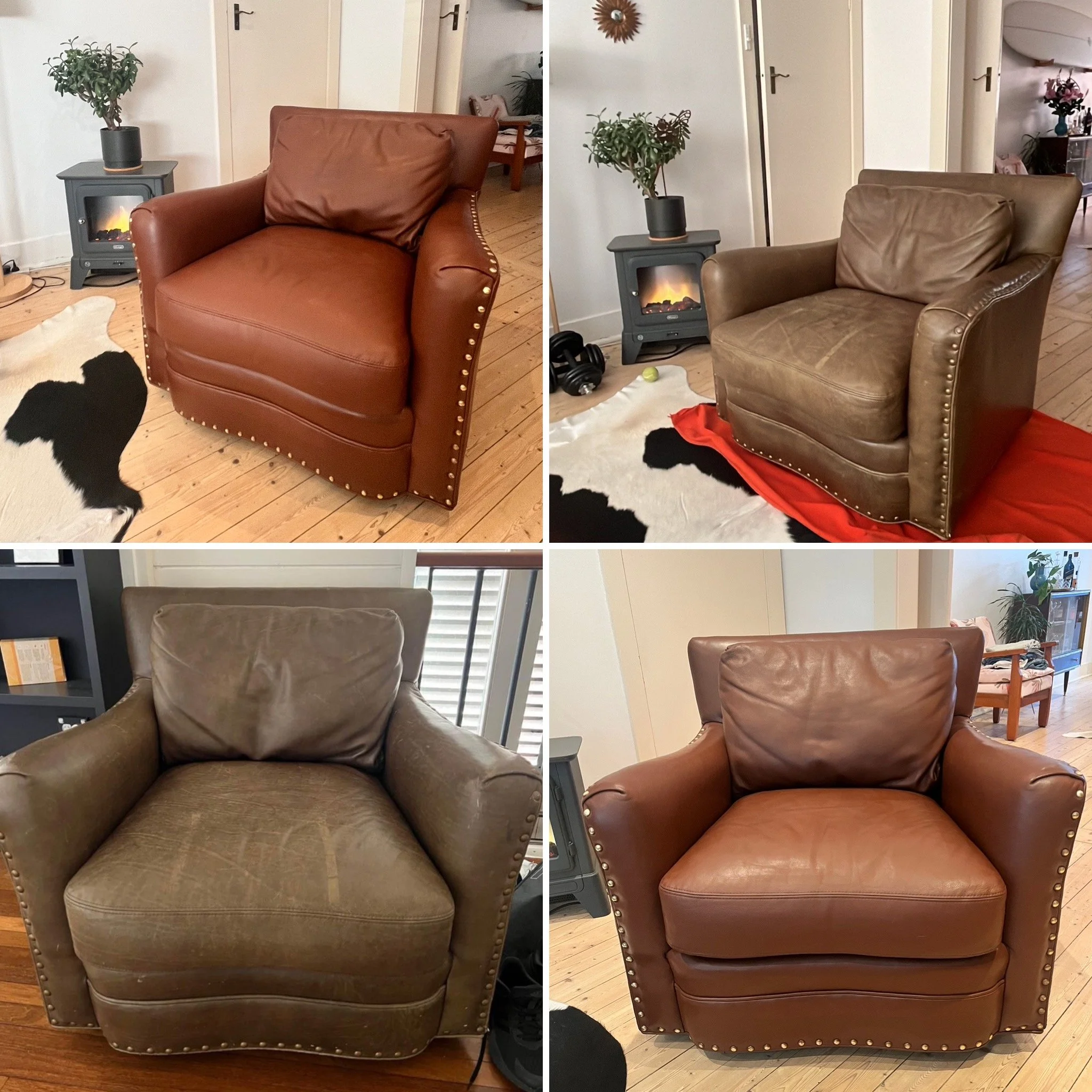 I’ve revitalised this classic Century Furniture leather swivel chair with a rich cognac brown finish, giving it a warm, inviting glow that complements any room. Originally crafted in the USA, this vintage piece still carries its authenticity certificate, adding to its charm. As a bonus, it comes with a cozy yellow blanket—perfect for relaxing with a book or movie.